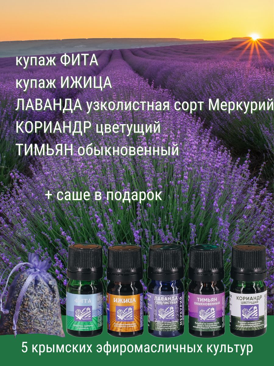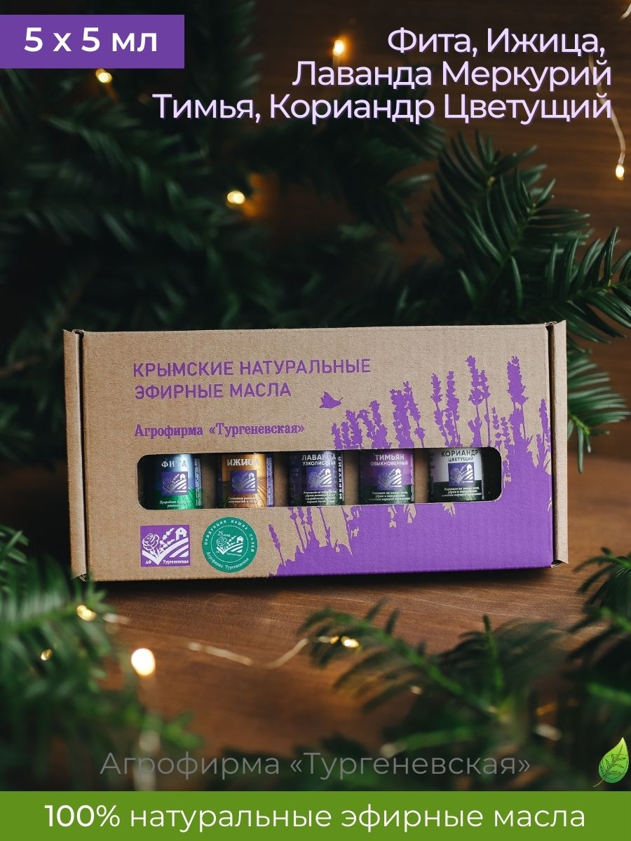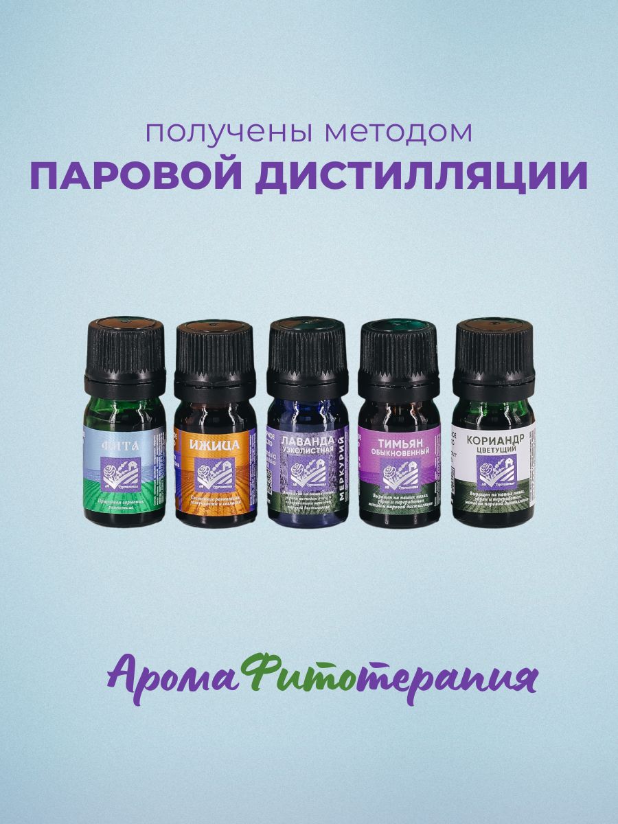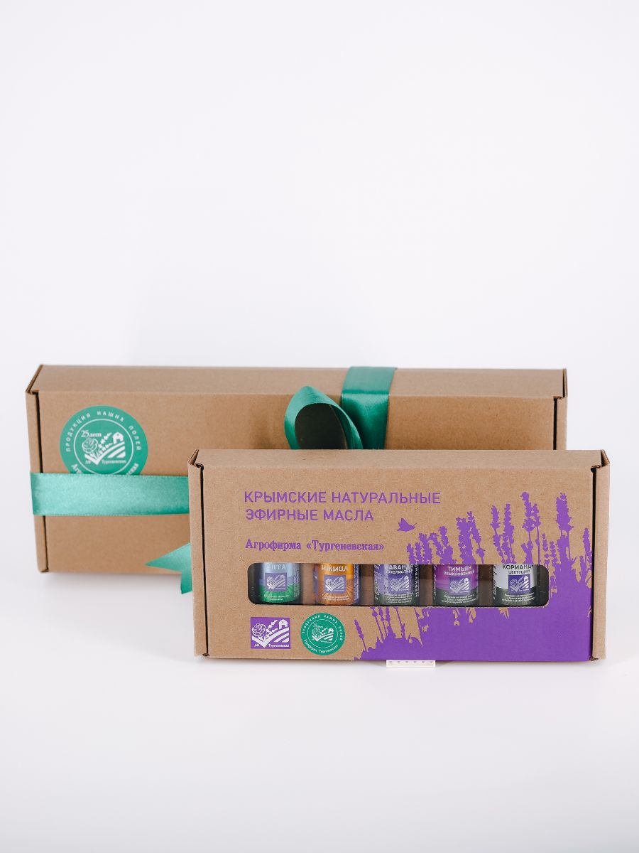 Набор содержит 5 видов натуральных эфирных масел по 5 мл каждого: